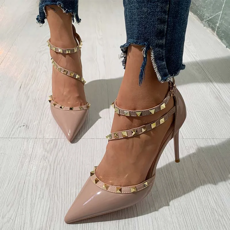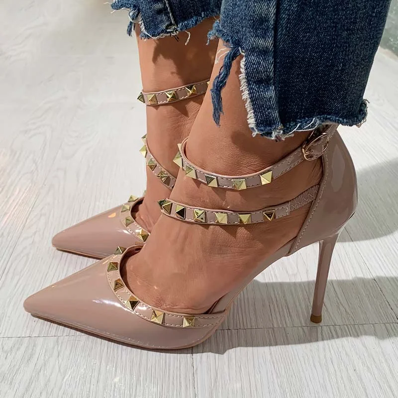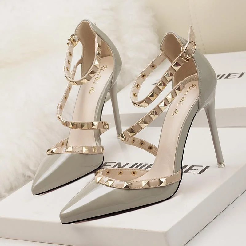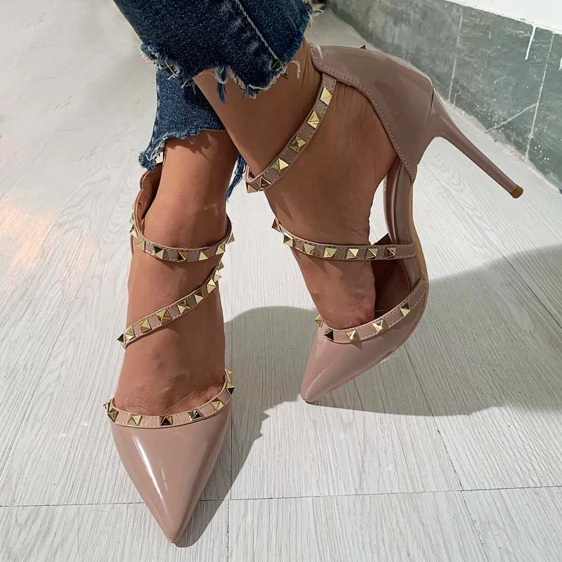 Fashion Pointed Rivet Strap Heels Sandals