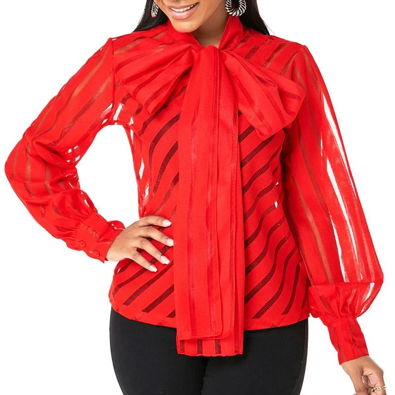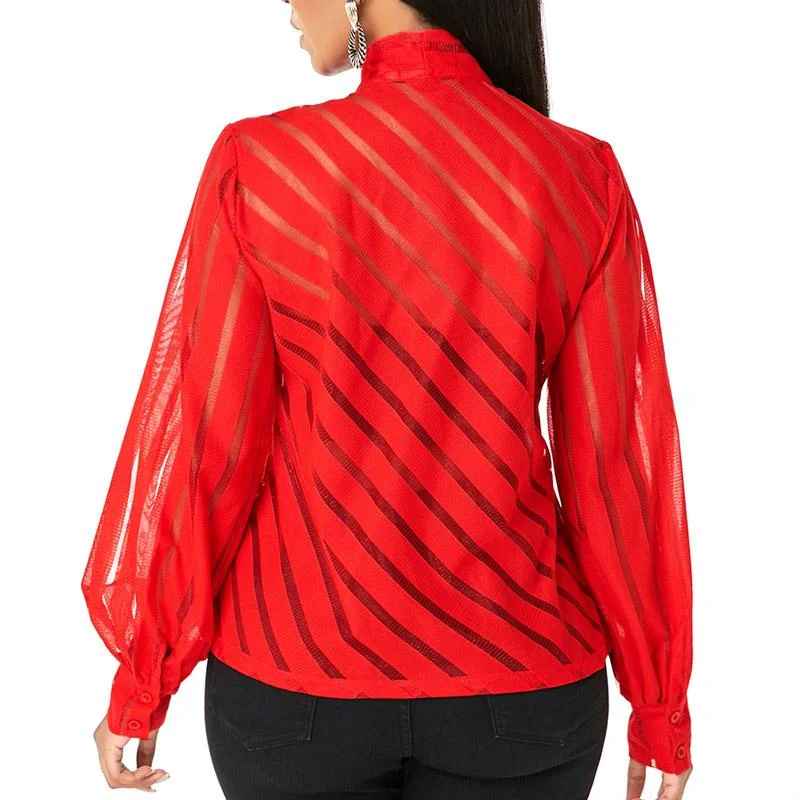 Lantern Sleeve Sheer Mesh Tied Blouse
