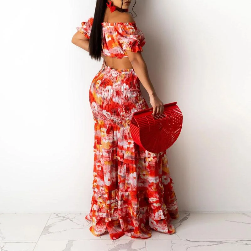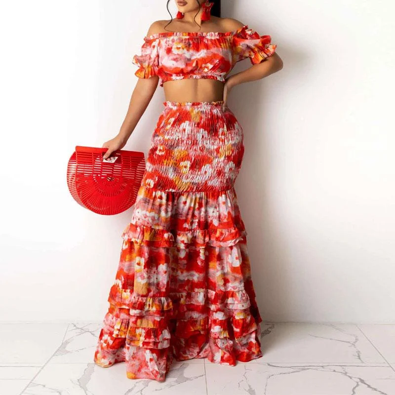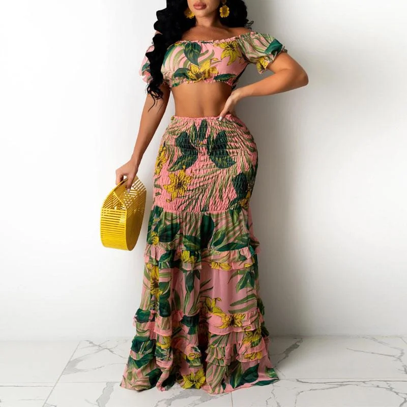 Leaf Pattern Crop Top & Skirt Set