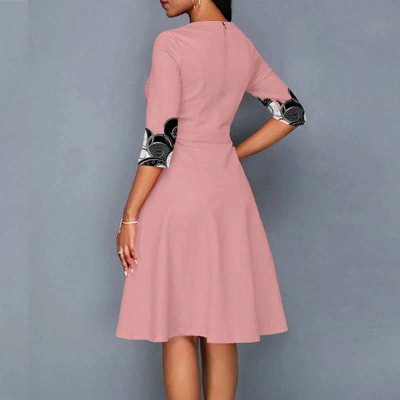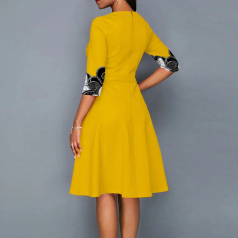 Print Half Sleeve Midi Dress